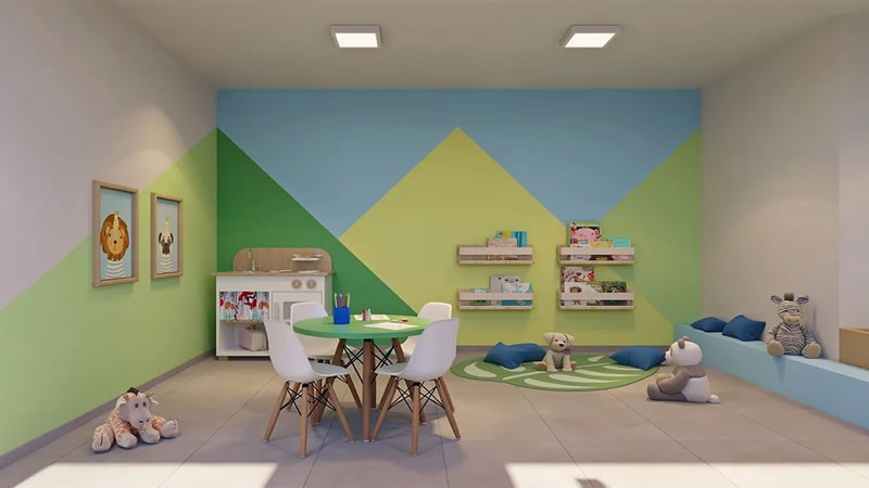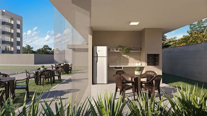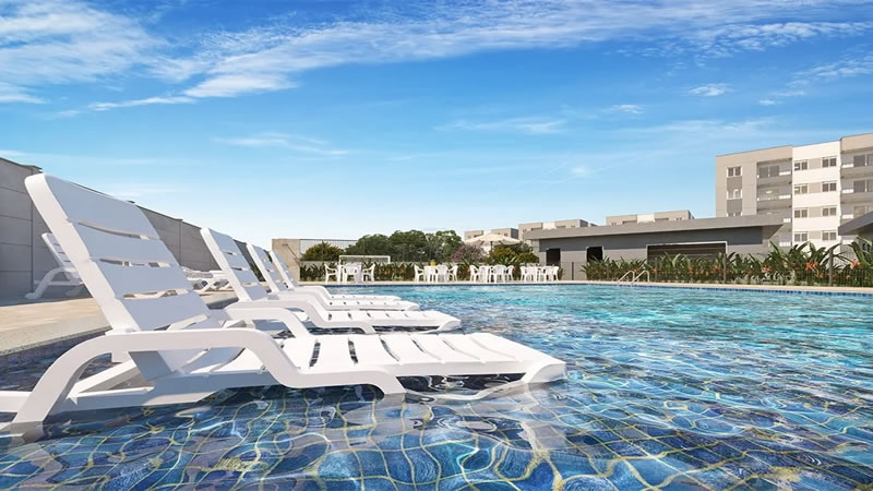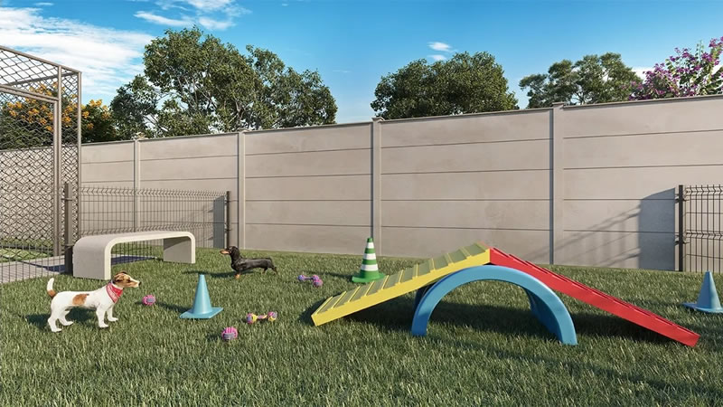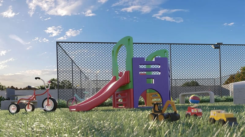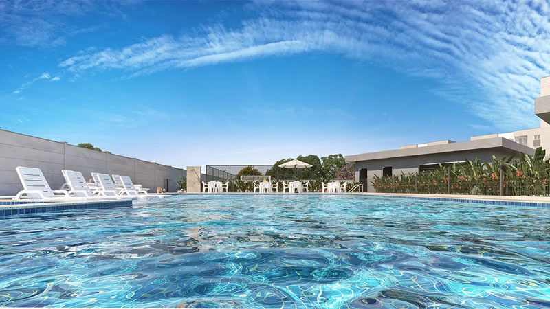 Piscina adulto, Piscina infantil, Prainha, Deck, Salão de festas, 2 churrasqueiras, Fitness externo, Quadra gramada, Playground, Espaço kids e Pet place.